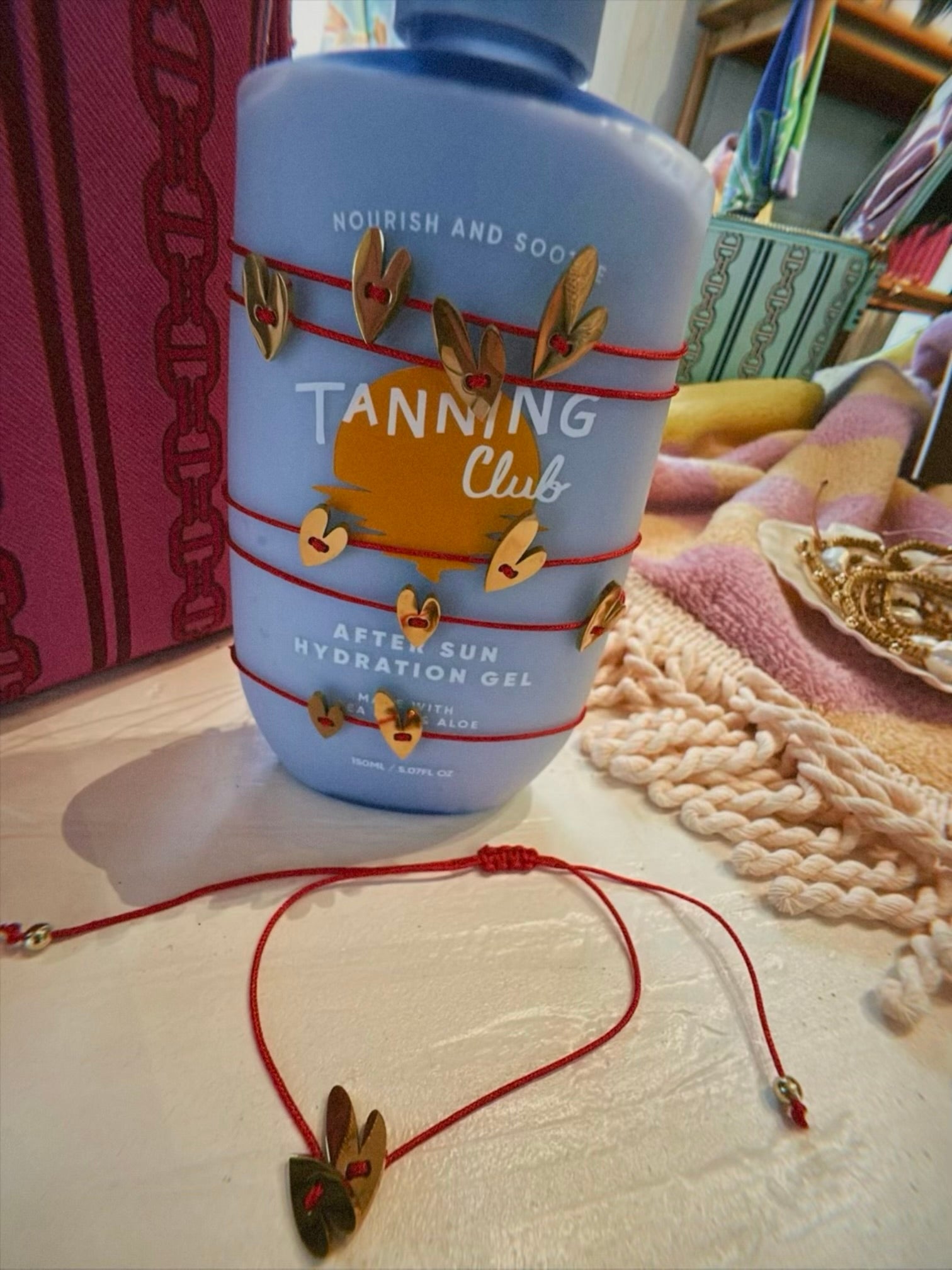 Surfboard resting in the back of a white convertible parked near the ocean, with clear skies and coastal greenery in the background.